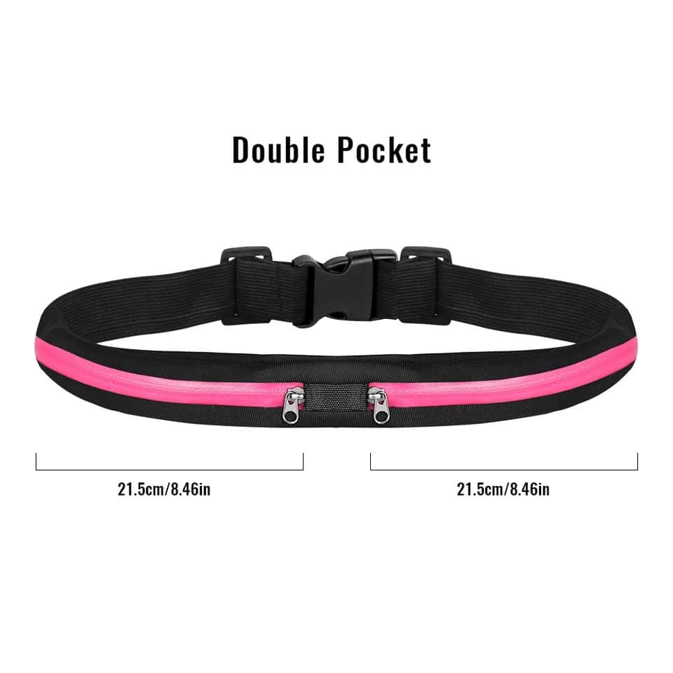 Juoksuvyö kahdella vetoketjutaskulla. Joustava materiaali, täydellinen treenivaruste. Säädettävä hihna.