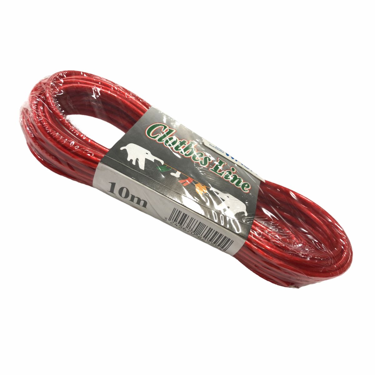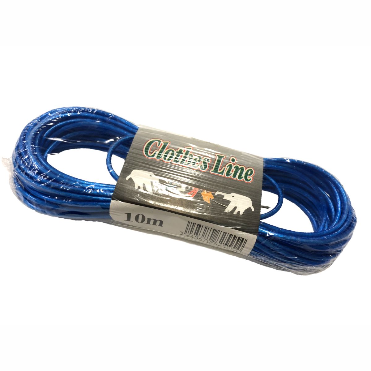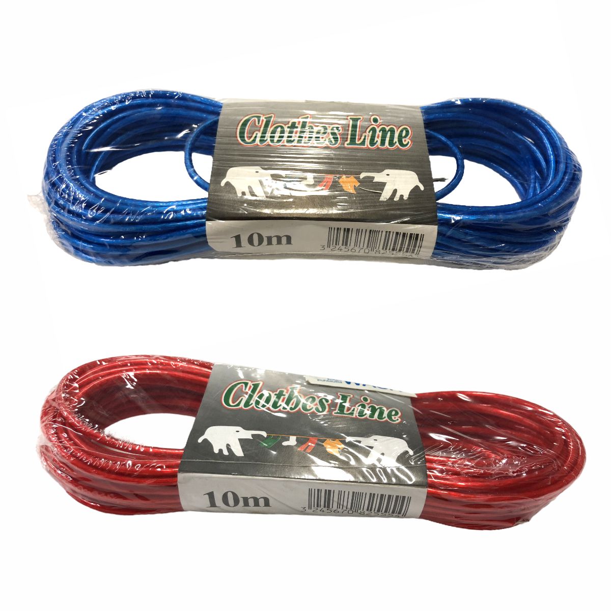 Pyykkinarua 10 metriä pakkauksessa. Valikoimassa kaksi eri väriä, punainen ja sininen.