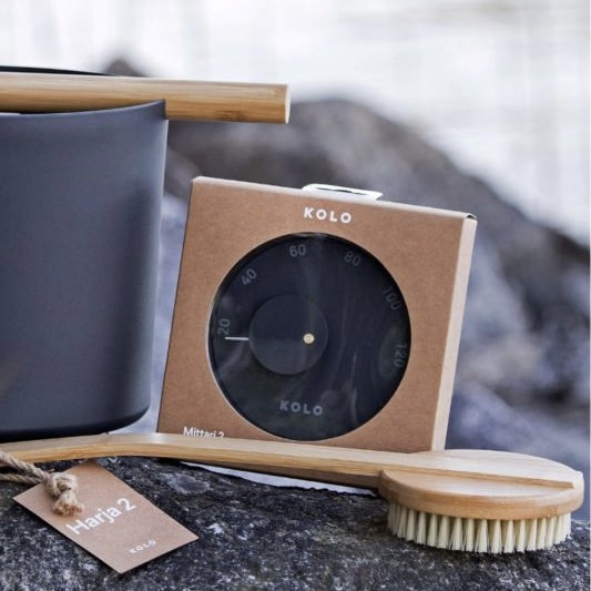 Tyylikäs KOLO saunamittari on kotimaista designia. Mustaksi pulverimaalattu mittari on samalla kaunis sisustuselementti saunaasi. Lahjaidea parhaimmillaan.